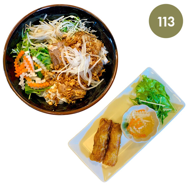 113 - チャーシューのスープ抜きフォー と揚げ春巻き 「2本」